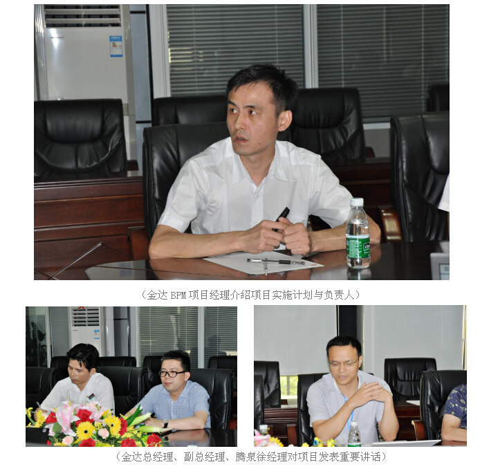 2016年5月18日上午,廣東金達攜同騰泉公司召開BPM平臺啟動大會,廣東金達總經理郭清良、副總經理楊巖、騰泉項目經理等領導一同出席會議。